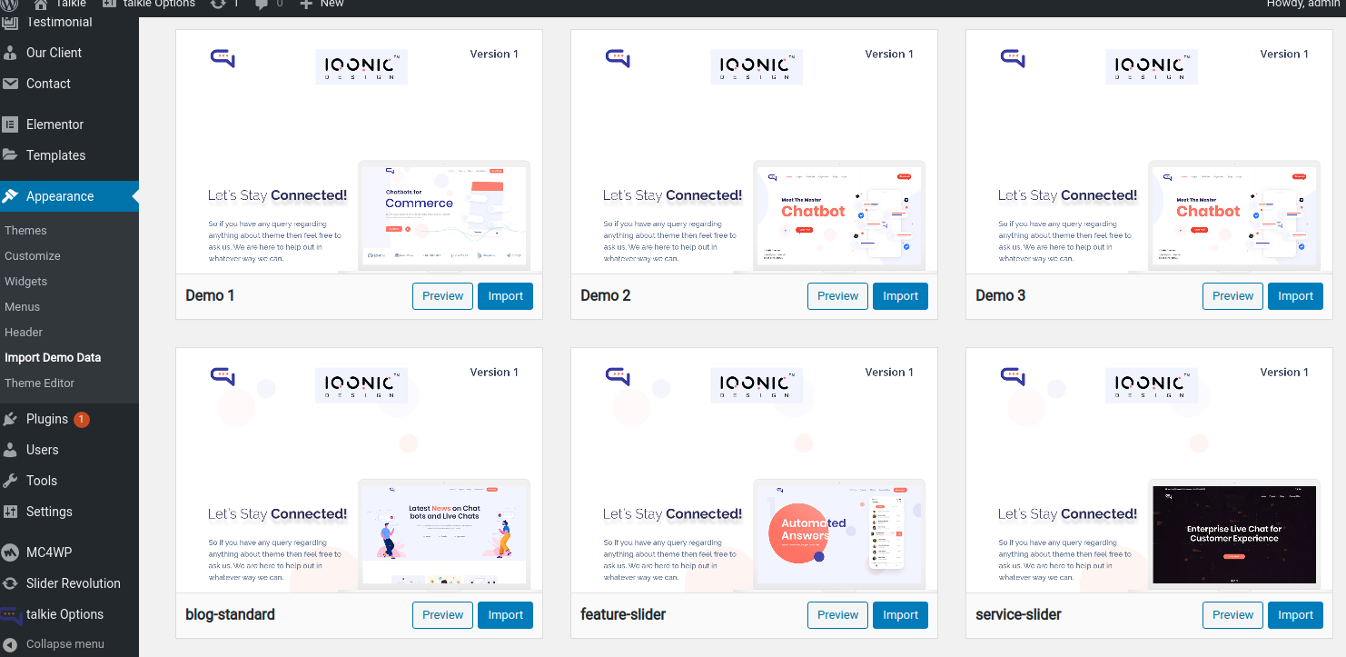 Go to Appearance > Import Demo Data. Then, Click on import.